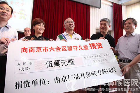 “爱心手牵手 共圆中国梦”公益活动启动仪式中,南京仁品耳鼻喉专科医院现场捐资帮助六合革命老区1000名留守儿童过一个不一样的暑期。据了解南京仁品将对参加本次活动的学生进行全程服务,不仅提供门票,还组织车辆接送,提供免费的午餐以及学生保险等等。同时作为赞助方,仁品耳鼻喉医院还贴心地为每位学生准备了小礼物。