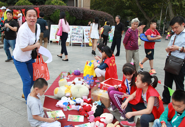 义卖活动于9月19日下午3点在省工商银行门口正式开启,义卖人员为扬子晚报小记者站的小记者们,还有来自弓箭坊社区的居民们。他们带上了家里的闲置物品和各种各样的小玩意儿来作为义卖品。南京仁品也为小记者们提供了相当可观的物品。此外,义卖活动现场还有才艺表演和互动活动。