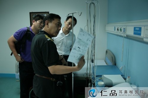 海军总医院耳鼻咽喉科、全军耳鼻咽喉中心主任孙建军教授(右一)亲临仁品医院住院部治疗中心指导工作